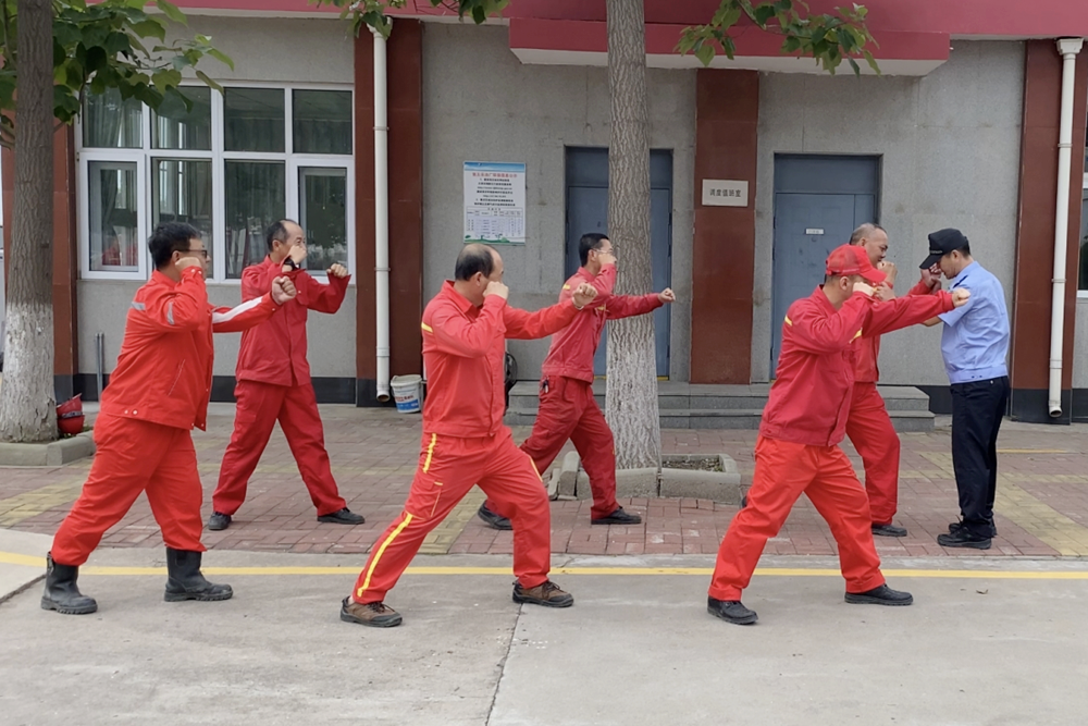 “立正、稍息、向前看”、“出拳、贯耳、抬腿、上肘……”,伴随着经警一声声宏亮的指令,员工做出了整齐划一的动作。 ![]() 在大港油田第五采油厂输注作业区,面对鲜红的党旗,生产保障中心的骨干成员正在为输注作业区党支部的党员进行着安保防恐技能培训,这是两个党支部联合开展党建联盟综治反恐“主题党日”活动的现场。