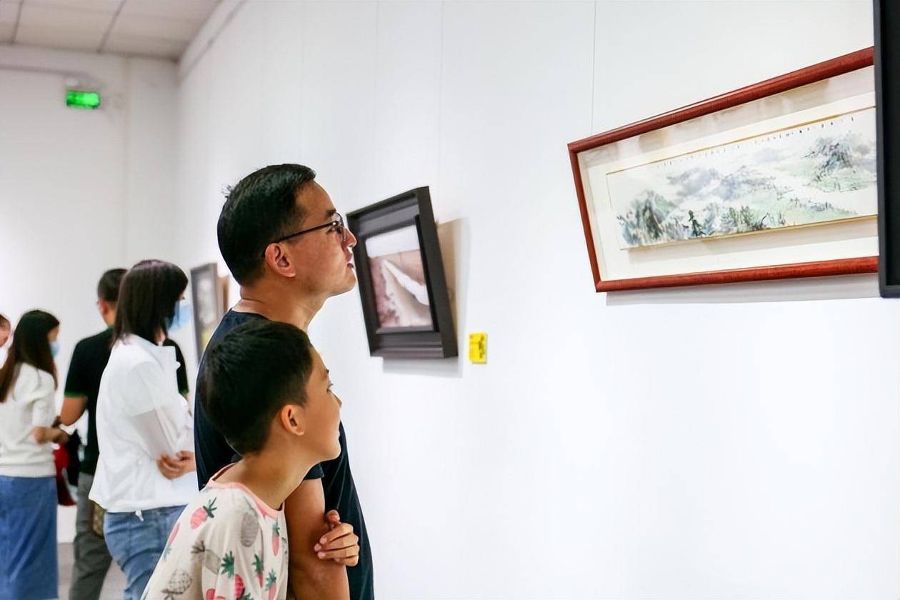 (艺术区学术委员会主任林跃明教授致词) 本届作品展有二十一位驻区艺术家参展,共展出作品一百余件,艺术种类丰富,除了国画,油画、版画、漆画,还有插画、陶艺、雕塑、珐琅彩等多种形式的艺术作品。