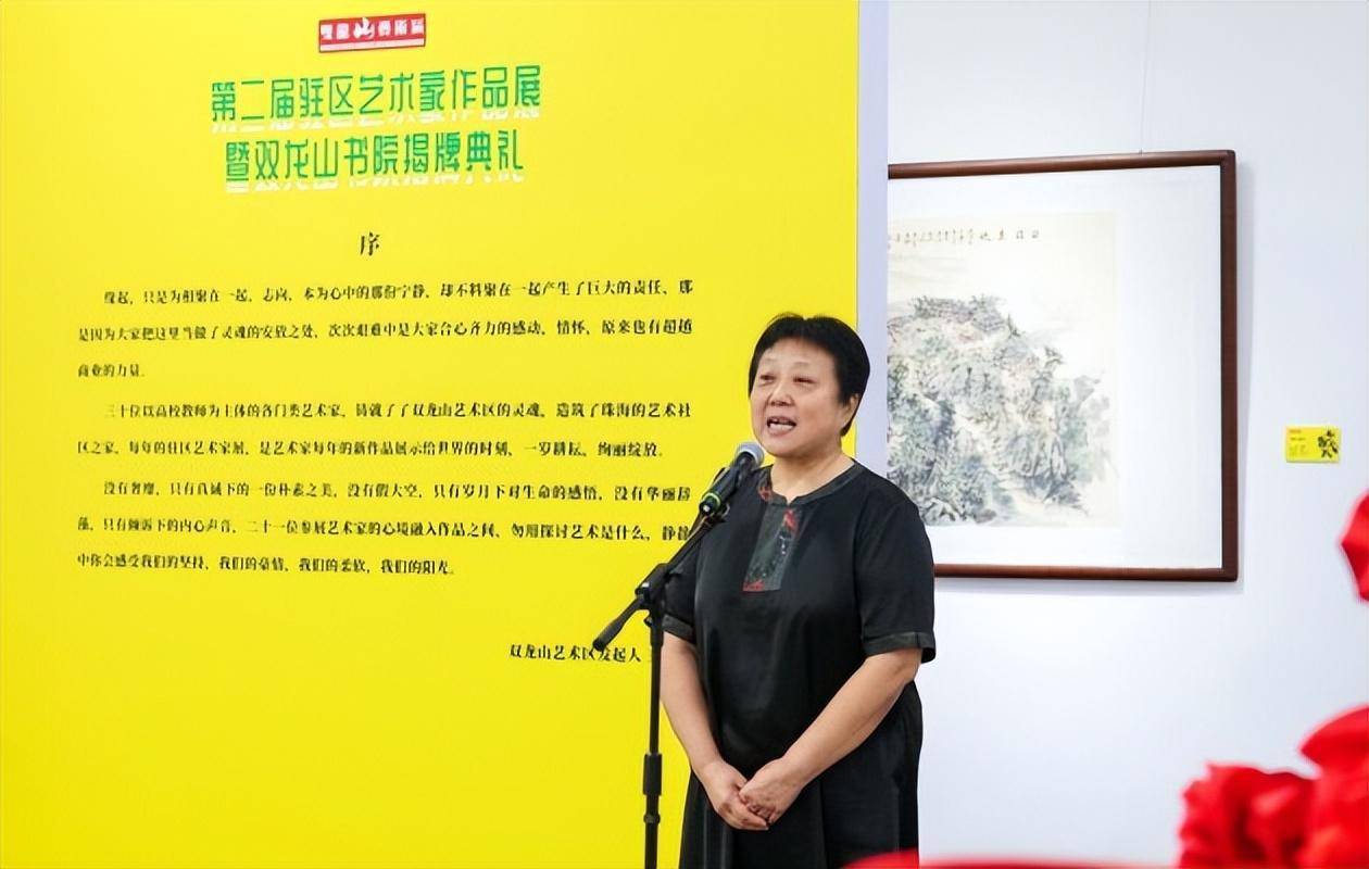 (左起王付刚、胡娜、徐亚非、宗明明、林跃明、李勇、魏良、章微) 双龙山书院将以弘扬中华优秀传统文化为宗旨,以市民文化艺术普及、提升市民审美素养为目标。依托高校师资队伍,发挥学术交流的桥梁作用,共同搭建学术研究新平台,出佳作、出精品。相信“双龙山书院”的挂牌成立,能进一步推进珠海社区文化建设事业的发展,为建设和谐宜人的新珠海做出积极的贡献。 活动当天,嘉宾们强烈感受到了自双龙山艺术区开园以来的种种翻天覆地变化。双龙山艺术区从最初的筹建,到现在的“艺术家聚集地”“珠海城市艺术名片”,克服了艰难困苦,到如今已成为蓬勃发展的艺术综合园区;从起始时两三间个人艺术工作室,到如今吸引了来自包括粤港澳在内的全国多地的大学教师、艺术家,目前已初具规模,艺术门类涵盖了国画、书法、版画、油画、漆画、雕塑、陶艺、摄影暗房、虚拟艺术、影视艺术、电影美术等多种艺术形式,从成立初期以工作室、美术馆为核心,到拓展了多个艺术板块,如影视中心、双龙山书院、研学中心、艺术画廊、艺术大讲堂和艺术书店于一体的特色综合艺术园区。 自2021年3月14日成立以来,双龙山艺术区得到了艺术各界与企业的支持,截止目前,双龙山艺术区已经举办过多场展览及艺术学术交流活动。如驻区艺术家作品年展、粤港澳高校毕业作品展、驻区艺术家作品年展、“墨攻”艺术邀请展、“一气之变”艺术邀请展、珠海中小学教师粉画艺术作品展等。