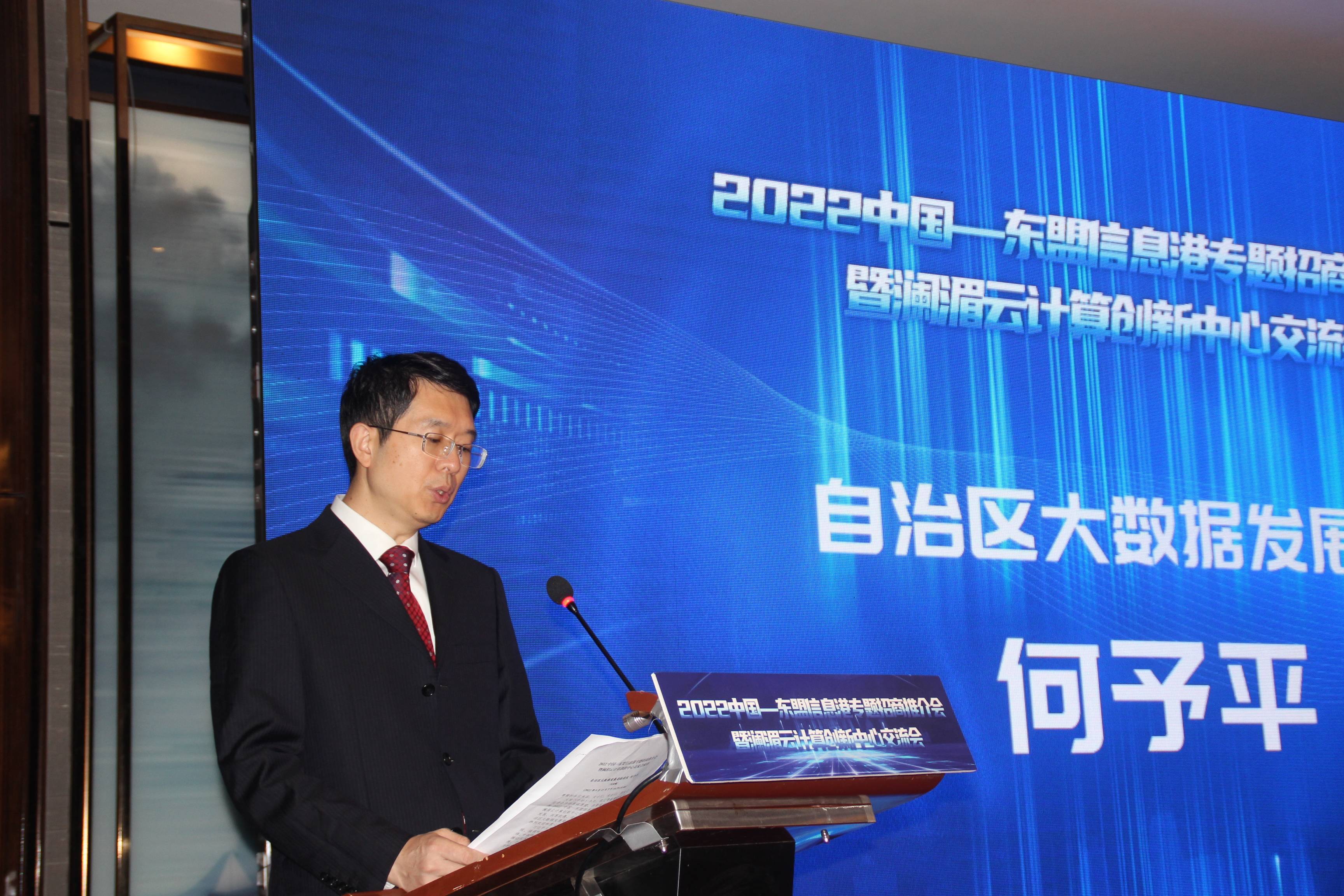 2022中国—东盟信息港专题招商推介会暨澜湄云计算创新中心交流会现场。张春梅/摄影 何予平介绍,本次大会也是澜湄云计算创新中心交流会,澜湄云计算创新中心已在老挝、柬埔寨、缅甸落地云计算中心,澜沧江-湄公河合作机制后续必将加速推进我们同东盟国家工业和信息化领域合作。