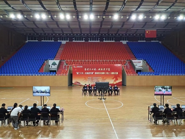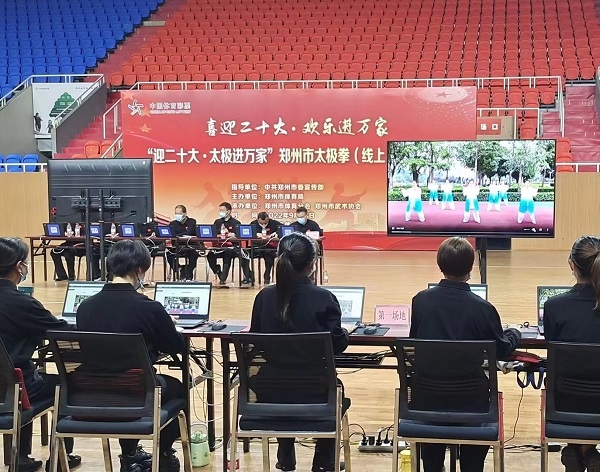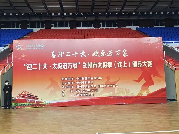 由郑州市体育局主办,郑州市体育分会、郑州市武术协会承办的郑州市“喜迎二十大 太极进万家”太极拳健身线上大赛于2022年9月23日,在郑州市体育馆开幕。