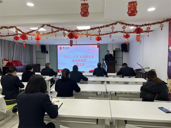 学习宣传贯彻党的二十大精神是当前和今后一个时期最重要的政治任务,中行丽水缙云支行根据上级党组织工作要求,迅速掀起学习热潮。 为把党的二十大精神学习宣传贯彻工作不断引向深处、落到实处,近日,缙云县支行党总支部书记、行长上官旭宾以《学习二十大 永远跟党走 奋进新征程》为题,为全体党员干部职工上了一堂生动的党课,并对上级行下发的重要文件、重点学习内容组织集中学习。