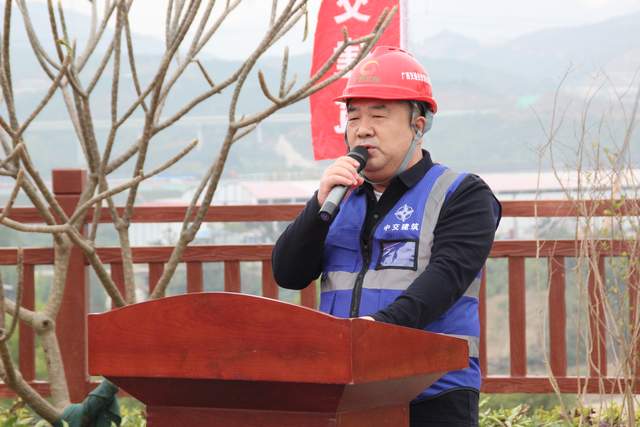 中交建筑巴田三标书记杜文明发言。 据了解,由中交建筑集团有限公司第十分公司(简称“中交建筑”)承建第三合同段,项目位于百色市田东县境内,线路全长21.6公里,主要工程主要工程量包括挖方634万方,填方286万方,隧道2座、桥梁33座,涵洞85道,互通2处、路面工程45km、交安绿化工程21.6km,房建建筑面积17865m2等,投资约26.02亿元,于2020年11月17日正式开工。