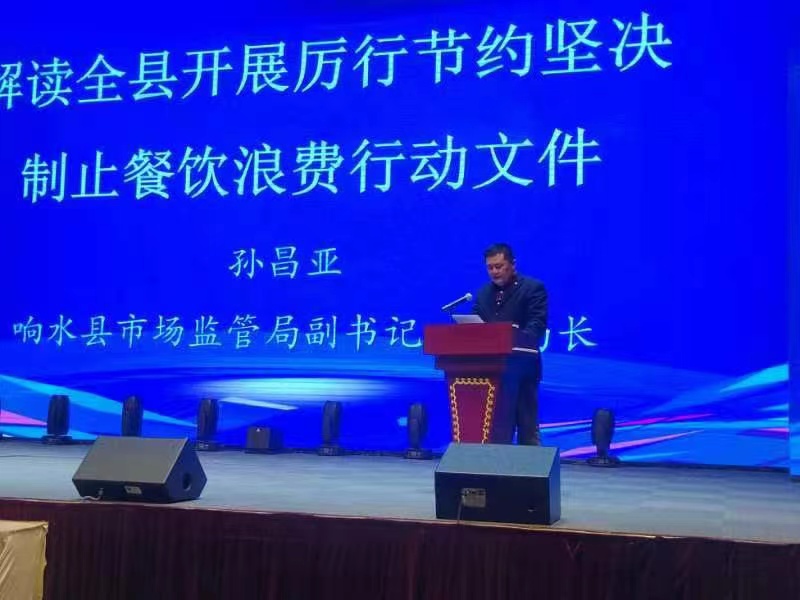 “举行‘制止餐饮浪费,倡导光盘行动’主题宣传活动,弘扬勤俭节约传统美德,促进我县餐饮业健康发展。” 县市场监督管理局副书记、副局长孙昌亚解读了制止餐饮浪费文件。