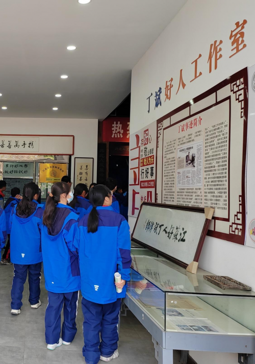 最后,同学们来到丁斌好人工作室,了解了丁斌的慈善事迹,知晓了丁斌律师发起设立了丹阳市如意慈善公益服务团是江苏省较大的慈善公益组织,以爱在身边为原则,收到了爱心捐款1000余万元,已帮扶了1800多户困难家族。
