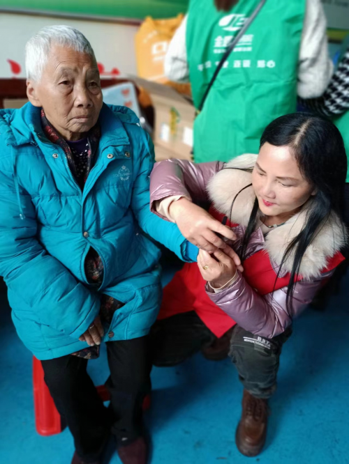 今天早上下着大雨,风雨无阻,大爱无疆,志愿者们冒雨赶来参加公益活动,学习雷锋精神关爱高龄老人活动。今天爱心企业赞助:宾阳家兴养老院,食用油,洗衣液,大米,活络油,抽纸,钙片等物资价值2万多元。新桥镇鑫鑫幼儿园的老师购买蛋糕和牛奶,幼儿园的小朋友拿蛋糕给养老院的每个老人吃。志愿者们给老人理发,量血压,做理疗按摩,擦药膏,做骨密度检测,唱歌给老人听,帮助老人剪指甲。