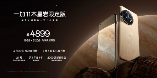 3 月 29 日,一加正式发布一加 11 木星岩限定版。一加 11 木星岩限定版设计传承于一加 11 的黑洞灵感美学,同时汲取了来自木星的个性、浪漫,并首次将3D微晶岩材质应用在数码类产品上,实现了每一款手机都有独一无二纹理的设计,为用户带来极具个性化的体验。 一加中国区总裁李杰表示:“一加11木星岩限定版在材料、工艺等多方面都在行业的‘无人区’里前行,一加希望用有温度的科技,创造这一份属于每个用户的‘独一无二’。”