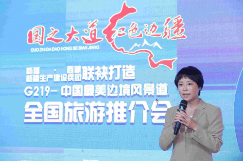 “兵团第五师双河市位于G219北疆段线路上,这里冰川、雪山、草原、湿地、湖泊、沙漠、胡杨、丹霞地貌一应俱全,素有“新疆自然景观全景缩影”的美誉。这里还有国家AAAA级旅游景区——怪石峪风景区。有人说,人间最美三月天,但是在双河,四季气象万千,景色魅力无穷,金色光影胡杨之乡、红色边陲英雄故乡、青色草原康养之乡、紫色浪漫葡萄之乡、银色梦幻冰雪之乡…便是双河这幅天然彩色画卷的真实写照。”李志芳说,期待全国各地的朋友与这座年轻的兵团军垦之城来一场美丽的“相逢”。