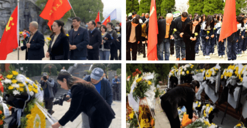 上午10时许,九江市华科技工学校参会人员在校长陈碧霞的带领下,向英烈群雕像敬献花圈,深深三鞠躬寄托无限的追思,并依次献上小菊花,表达了对英烈无限的崇敬。尔后,校全体党员在党支部副书记石冠南同志的领读下,面向鲜艳的党旗,重温入党誓词,表达了华科学校党员听党话、跟党走的坚定决心。
