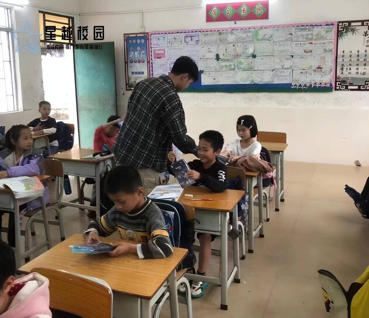图:大窝岗学校的孩子们 在学校里,仍有许多家庭困难的孩子共用同一个作业本,同一组文具,同一本书籍。一套文具,一本属于自己的书籍,是许多交不起书本费的孩子梦寐以求的东西。在获得星越校园所赠与的文具与书籍时,孩子们都露出了开心的笑容。
