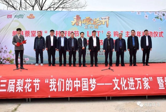 春光无限好,梨花朵朵开;欢聚蔡堂,共享美景。4月1日,单县蔡堂镇“乡村好时节LET’S 购”主题年启动仪式暨蔡第三届梨花节开幕式圆满举行。县政府党组成员瞿孝坤,县人大原副主任付道正,县委组织部常务副部长单卓,县文旅局党组书记李强,县委宣传部副部长、县融媒体中心主任傅子栋,县农业农村局局长李亮,县工信局局长段伟,县发改局党组书记帅文杰,县交通局局长张忠瑞,县自然资源和规划局局长李兰峰,蔡堂镇镇村相关负责人参加动。