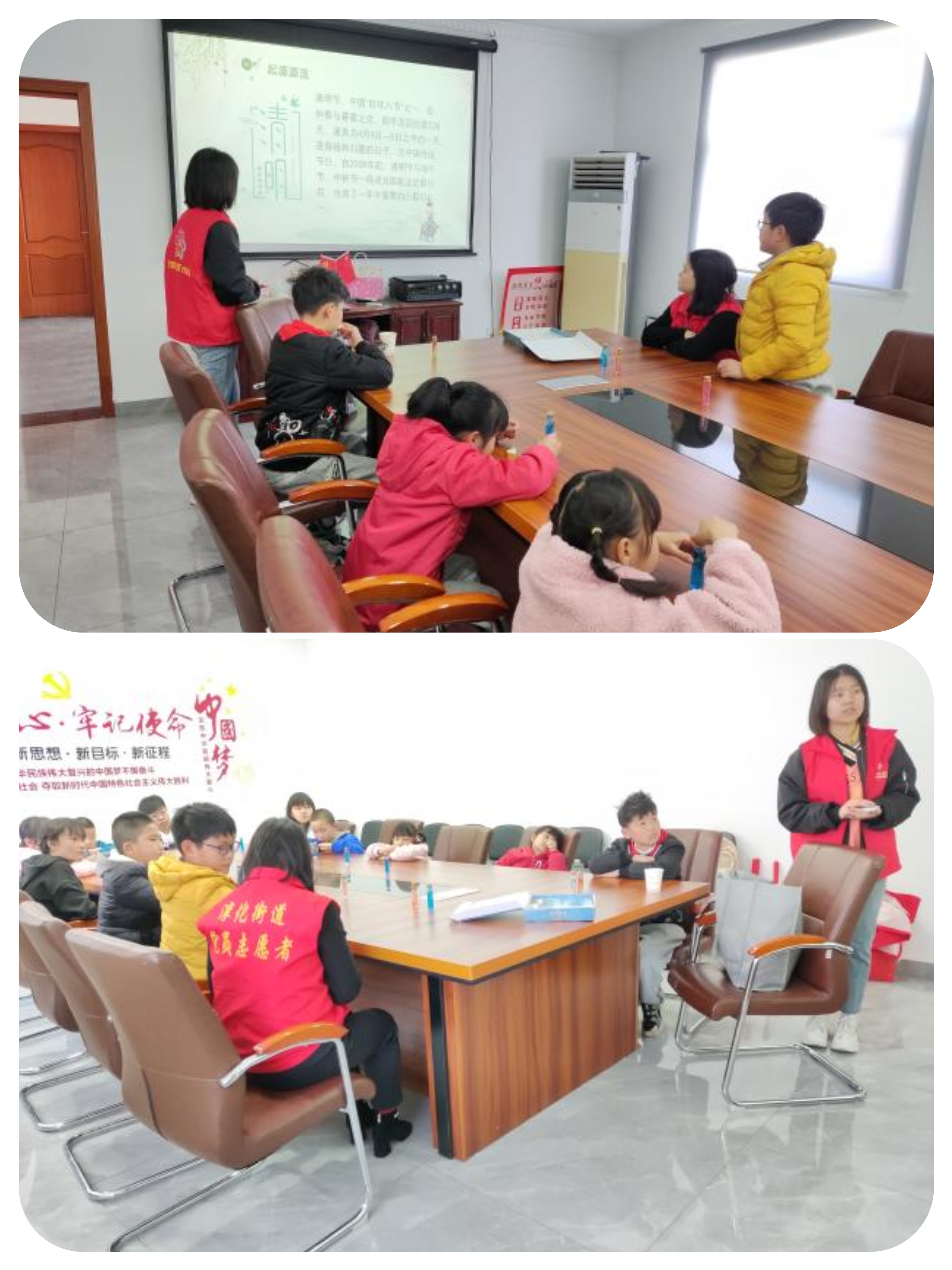 活动开始,志愿者不仅向小朋友们介绍了清明节的起源历史,还介绍了清明节的传统风俗,例如扫墓、踏青、做青团等等,小朋友们听的津津有味。随后,志愿者像小朋友们介绍了现代安全文明过清明节的方法,号召大家不要焚香烧纸燃放烟花,可以用菊花代替元宝,进行洗墓植树等文明祭祀活动。小朋友们听后纷纷点头。