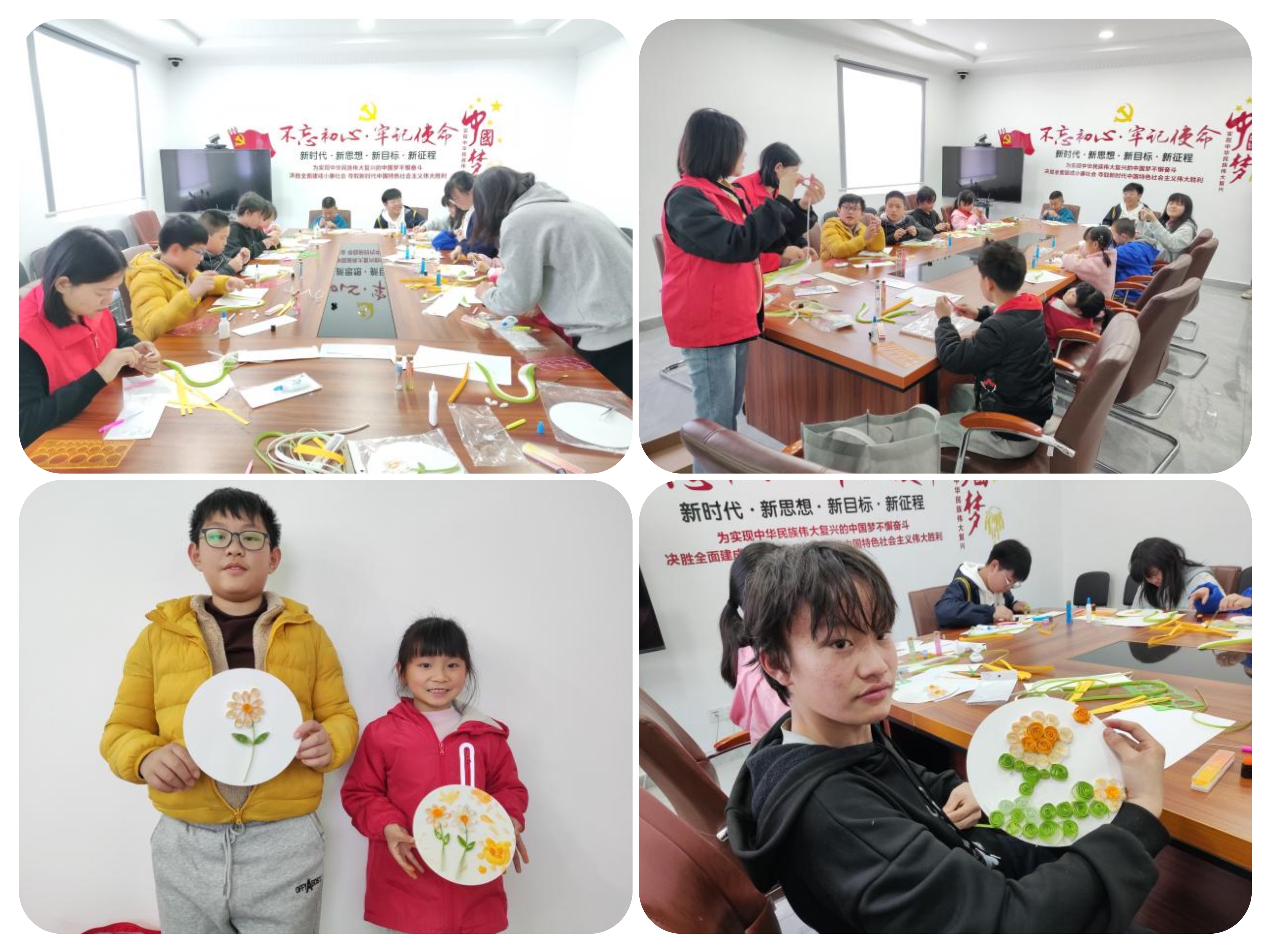随后,志愿者带领小朋友们制作衍纸菊花手工制作,让小朋友们通过衍纸菊花表达自己祭祀先祖的情感。志愿者先向小朋友们讲解了衍纸菊花的制作步骤和技巧,一步一步耐心的引导他们亲手感受手工制作的乐趣。小朋友们在志愿者的带领下,有的卷纸粘贴,有的剪切捏形,不亦乐乎的制作自己的手工作品。在小朋友们热火朝天的努力下,一朵朵衍纸菊花出现在大家眼前。