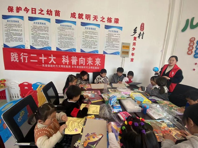 “小朋友们,你们知道地球仪上的颜色分别代表什么吗?知道我们中国在地球仪上的位置吗?今天我们就来了解一下。” 4月1日,响水县双港镇新时代文明实践所、丰华家园新时代文明实践站,联合在复兴少年宫举行“践行二十大,科普向未来”主题活动,爱心志愿者正在给丰大村的小朋友们讲解地理常识。 实施科教兴国战略,营造良好科普氛围。近年来,响水县双港镇不断推进科普宣传教育工作,激发青少年学习热情,营造良好的学习交流氛围。 活动现场,志愿者通过提问的方式引导小朋友进行思考,随后向小朋友们讲述了地球仪上面的相关知识。小朋友们听的津津有味,现场热闹非凡。 知识讲解之后,志愿者们为小朋友们送上拼图小礼物,并耐心指导他们,按照步骤一点一点拼接起来,不一会儿,一件件拼图成品呈现在大家眼前,小朋友们兴高采烈地互相展示自己的作品。 双港镇丰大村妇联主席张云梅说:“组织孩子们开展‘践行二十大,科普向未来’地理知识科普活动,让孩子们对地理知识有了新的了解,激发了他们的学习热情,对孩子们世界观的形成有很大帮助。”
