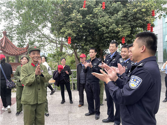 服务老兵·追忆历史 “一杯温茶,一句亲切问候,一系列暖心举措,寄托着浓浓拥军情,关爱着这些最可爱的‘班长们’”。水口关出入境边防检查站扎实做好清明节期间服务老兵参观工作,积极开展“优质服务老兵 传承红色基因”等主题活动,在口岸执勤点设立参观引导台和老兵爱心服务点,派专人做好接待工作,耐心讲解参观注意事项及口岸政策,调控口岸限定区域车辆,全面保障口岸通关畅行秩序,给予参观老兵最优服务、最暖措施。