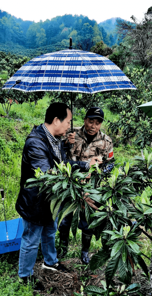 “谢谢专家,你们冒雨来枇杷园为我们诊断枇杷树的病虫害、传授枇杷修枝、疏花、疏果、除草、防鸟等技术。马上我要组织果农把今天专家指导意见和方法用于我村200多亩的枇杷树上,相信今年我们的枇杷有个好收成。我还有个不情之请,望专家留个联系方式,以后果园还有什么情况,我要打电话请您来哦。我们非常欢迎县人社局组织的专家服务基层活动,感恩镇政府、县农业农村局领导和专家对我们果农的关心和帮助。”横路村汪仁胜说。