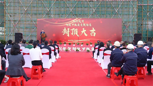现场人头攒动、彩旗飘扬,封顶仪式在一片热闹祥和的气氛中圆满举行。