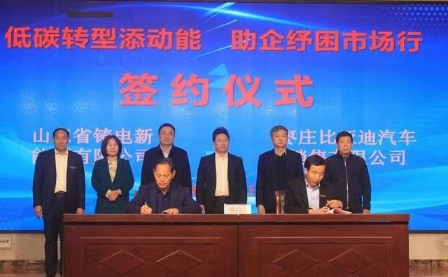 随后,举行了合作签约仪式。山东省铸电新能源有限公司分别与山东东铁动力科技有限公司、枣庄比亚迪汽车销售有限公司、枣庄联鑫实业科技有限责任公司签订了产品供需战略合作框架协议。