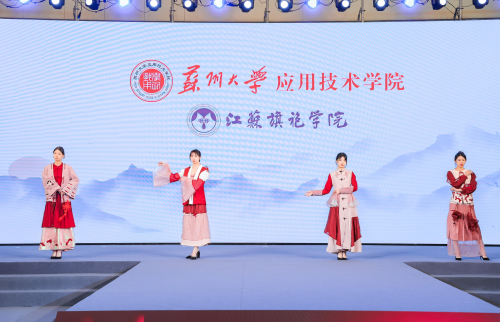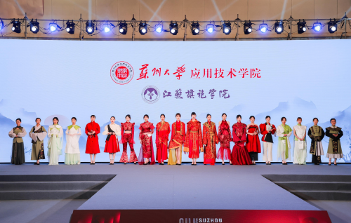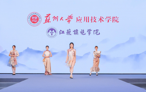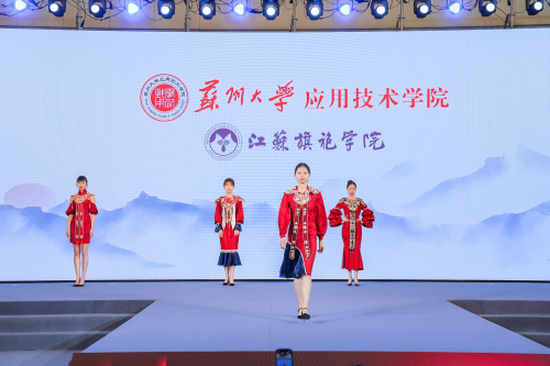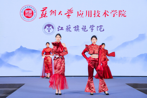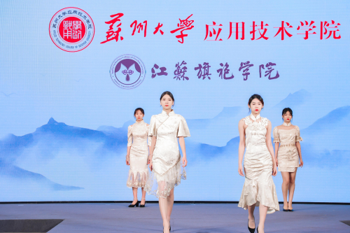 苏州大学应用技术学院江苏旗袍学院作为苏州市院校优秀企业学院代表,已连续4年获邀参加展会。此次参展,学院以“领·中式服装,秀·旗艺智造”为主题,呈现了一场精彩的服装秀。所展演的16个系列、64件作品全部来自于学院的学生,从设计元素到款式,从材质到色彩,每一个细节都显示出学生们的匠心创作,每一件作品都承载着苏应学子对于传统服饰文化的热爱,现场吸引了许多参观者的目光,收获好评不断。
