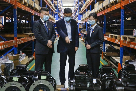 建行浙江省温州永嘉支行深入制造业龙头企业凯泉集团了解其生产经营状况,商讨制定融资方案支持企业发展。