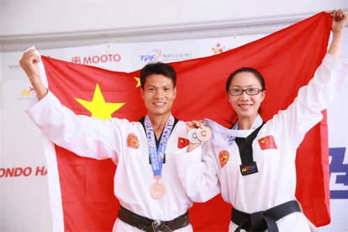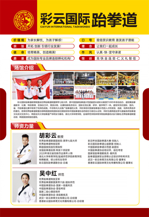 (胡彩云在表演) 据了解,跆拳道高手胡彩云被世界跆拳道联盟认证为黑带七段大师。喜讯传来,国内武林为之振奋。跆拳道黑带七段是个什么级别呢?黑带是跆拳道高手的象征,是实力的体现,更是一种荣誉和责任。黑带七段至九段只会授予具有很高学识造诣和对跆拳道的发展作出重大贡献的杰出人物。良缘成对,好事成双。就在胡彩云被认证为黑带七段大师不久,他的妻子吴中红被认证为黑带六段高手,这在国内女子中也是极其少见的。他们一起创办的武汉彩云国际跆拳道联盟,也于2020年获得了韩国国技院跆拳道国际段位考点授权。这对跆拳道夫妻档,当年因为对武术有相同的爱好,从相识到相知。42岁的胡彩云和吴中红同年。胡彩云年幼家贫,兄弟姊妹多,他很小就辍学出去打工了。历经千辛万苦,1995年,胡彩云终于攒够了一笔学费,到公安县县城一家武馆内去圆心里的“武术梦”。1997年,凭借个人的不懈努力,胡彩云被保送武汉体育学院,师从韩国金哲熙老师系统地学习跆拳道。进修之后回武校任教。在回校任教的过程中,他认识了当时的学生吴中红,这也结下了一段姻缘。 1999年,胡彩云跟随自己的老师在武汉洪山体育馆开馆。吴中红此时也来到武汉工作。她每周利用周末的时间来馆里训练一下。每日朝夕相处,年龄相仿的两人日久生情。2000年,胡彩云和吴中红谈起了恋爱。用现在比较物质的眼光看,“穷”小子胡彩云除了一身好本领外,要房没房,要车没车。但吴中红就认定了他:“觉得他是个有韧性的人,能吃苦、很实在。对家庭有责任心和担当,做的比说的多。对父母很孝顺。是他的人品打动了我。”