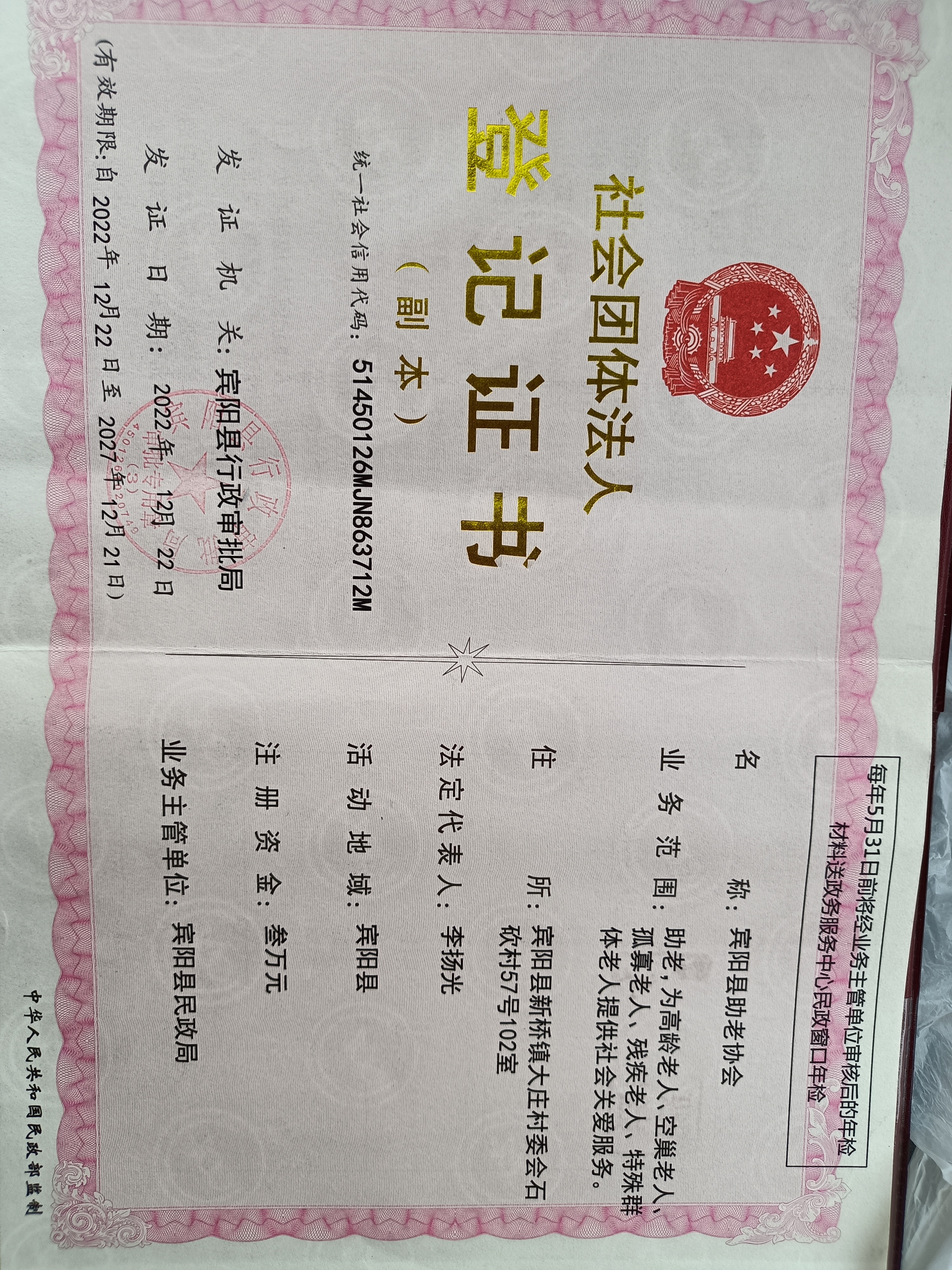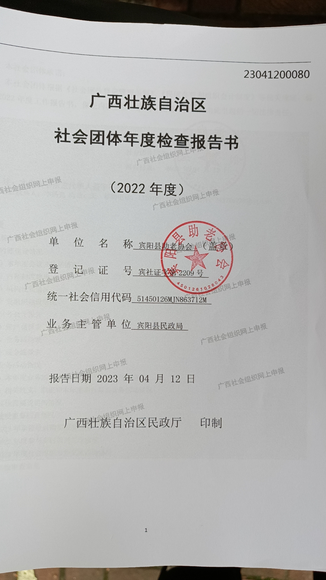 ![]() 2023年4月12日宾阳县助老协会的法人代表(理事长)李扬光在宾阳县民政局办理2022年审检查报告书,得到:广西民政厅,南宁市民政局,宾阳县民政局领导的支持帮助,快速办理年审报告。