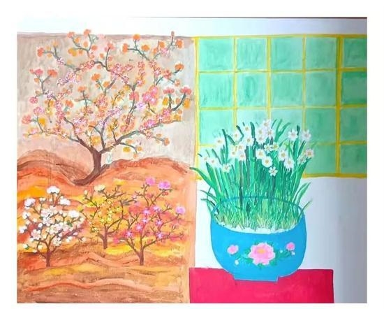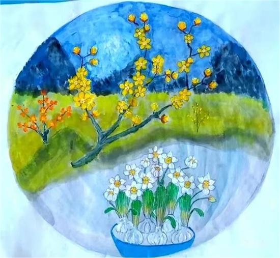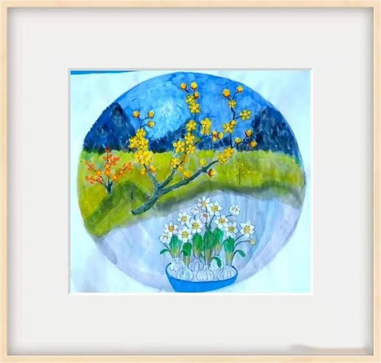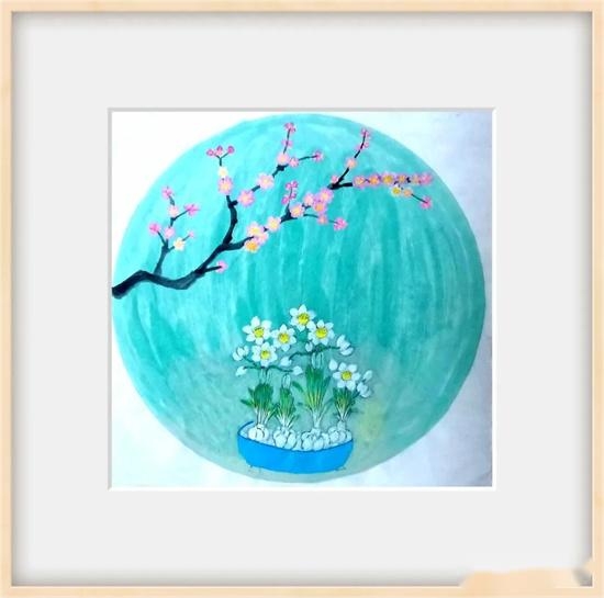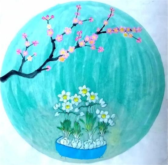 善解人意的水仙就是这样出现了,出现在众芳退后的寂静,出现在人们的渴望之中。她是温柔,她是爱意,她是苦厄中的暖心之物。令人欣慰的是,水仙并不孤单,她有她的“蜜友”陪伴,这蜜友,就是同样不畏风寒、同样以她的爱心在寒冷中抚慰人心灵的腊梅。旧时在福州老家,乡间木屋背倚一座梅花山,每当冬深时节,梅花迎寒吐蕾,甚是迷人。梅是凌寒仙子,品格与水仙同,她们情同姐妹,同样在严寒萧瑟的时节出现。