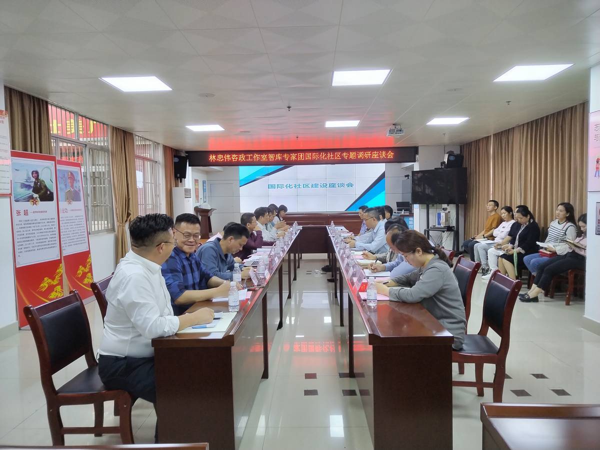 仲春南国,春意融融,如花似锦。邕江一湾绿水直奔珠江,流向南海,融入太平洋。 4月14日下午,林忠伟咨政工作室智库专家团一行11人来到位于邕江北畔的南宁市津头街道办事处参观学习交流活动,津头街道办事处党工委书记、人大工委主任赵智明,津头街道办事处党工委副书记、办事处主任梁世奎,津头街道办事处党工委组织委员黄晓燕,津头街道办事处党政综合办公室主任王宇韬,基层党建办公室,公共服务办公室,桂花社区、紫荆社区、桂雅社区负责人,以及南宁市外事办副主任覃剑、青秀区公安分局副局长朱金有、南宁市公安局出入境支队李金萍、治安大队副大队长李焕春,南宁市外事办综合协调科主任科员韦成庆、南宁市外事办涉外管理与港澳工作科陆颖杰等相关领导热情接待,围绕主题“林忠伟咨政工作室智库专家团国际化社区专题调研座谈会”热烈研讨,专家们畅所欲言,建言献策,共商关于南宁市建设国际大都市的定位,顺势谋事,合力将津头街道办事处打造成广西第一个“国际化社区”,助力南宁市建设国际大都市。此次调研活动达到了积极主动推进专家咨政践行,大兴调查研究,深入基层,深入实际,深入农村,深入调研,以实际行动为党委政府工作提供有价值的决策参考,为机关企事业单位服务的预期效果。