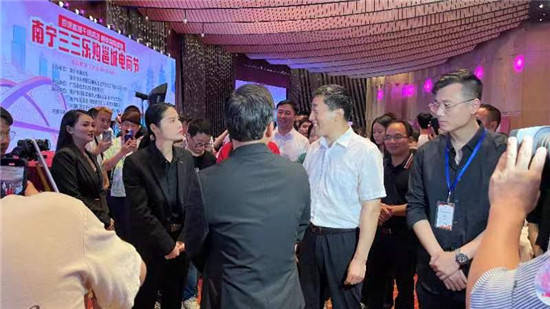 南宁市副市长刘宗晓出席启动仪式并致辞,他表示,“近年来,南宁市持续优化电子商务营商环境,大力培育电子商务新业态、新模式,积极打造数字经济新优势。本次南宁三三乐购邕城电商节活动是落实市委、市政府促消费工作的重要举措。活动将利用直播电商新形式推动全市节日消费快速增长,为全市人民送上一场精彩纷呈的消费盛宴。”启动仪式现场,笑笑姐、钟爱老表、韦二夫妇分别分享了直播带货和短视频运营的经验,精灵汽车、皇氏乳业等企业代表现场推介了参与本次电商节的新产品、新机制。 启动仪式后,市商务局陶琳副局长、市乡村振兴和防止返贫致贫工作指挥部办公室王政壹副主任走进知名主播的直播间,向在线粉丝推介南宁市茉莉花茶、蛋黄酥、水牛奶等产品,一批“邕城名品”通过直播带货变成“网红抢手货”。