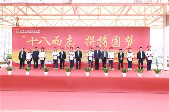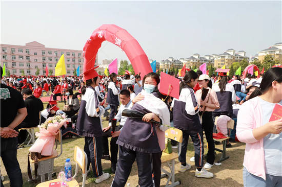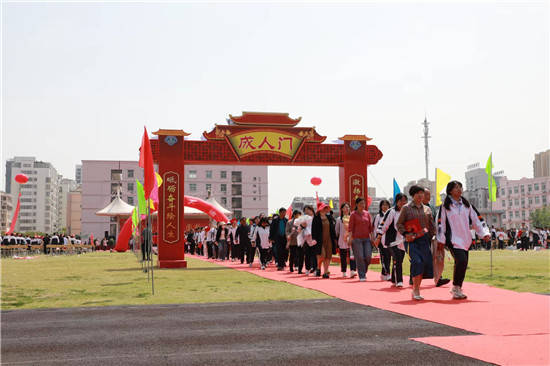 以“十八而志,拼搏圆梦”为主题的、淮安市新马高中2023届高三成人礼于4月18日上午举行。 学校田径场上彩旗飘飘,铺着红地毯的成人大道上立着“成人、成才、成功”三道大拱门,乐声悠扬,整个校园洋溢着喜庆的气氛。