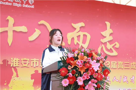 学生代表杨净涵作了表达感恩之情、承诺成人责任,展望青春梦想的发言,又由二位同学合诵了长诗《十八岁的畅想》,让全体与会人员感受着朝气蓬勃和热血在沸腾。