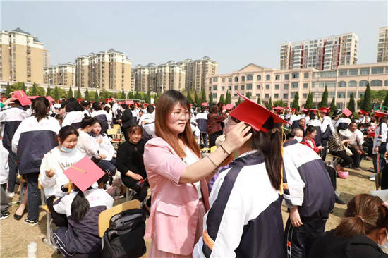 陈姿羽同学的母亲作为家长代表讲话。她以一个母亲的角度回顾了孩子的一路成长,同时寄语每位同学学会感恩,学会坚强,学会承担,义无反顾走好人生之路。 这场成人礼一个重要环节是:季希彦董事长、陈香峰校长等校领导和家长为学生加冠、佩戴纪念章和赠送宪法文本,由李勇军主任带领郑重进行宪法宣誓,更增加了同学们成人的责任感和神圣感。