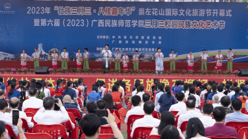 “潮起三月三 奋进新时代”,4月18日上午,“壮族三月三·八桂嘉年华”崇左花山国际文化旅游节开幕式暨第六届广西民族师范学院三月三校园民族文化艺术节隆重开幕。
