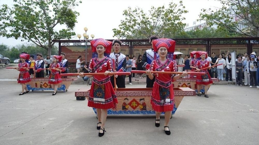 民族团结我同行,各族师生一家亲 除了精彩的开幕式表演,在美丽的呗侬湖和修业桥上,穿着民族服装的小伙子和姑娘们现场对唱山歌,悦耳的歌声,动感的旋律,让人忍不住跟着一起唱起来;还有激情澎湃的“打榔舞体验区”,木杵声声,榔声阵阵,再现壮乡儿女打榔庆丰收的欢乐场景;独竹漂的“武林高手”们,驾一根轻竹迎风而来,衣袂翻飞,在江上来去自如,令人赞叹不已。还有抢花炮、蹴球、抛绣球(高杆绣球、背篓绣球)、打陀螺、高脚马、板鞋等民族体育比赛项目,让人过足民俗文化体验瘾。