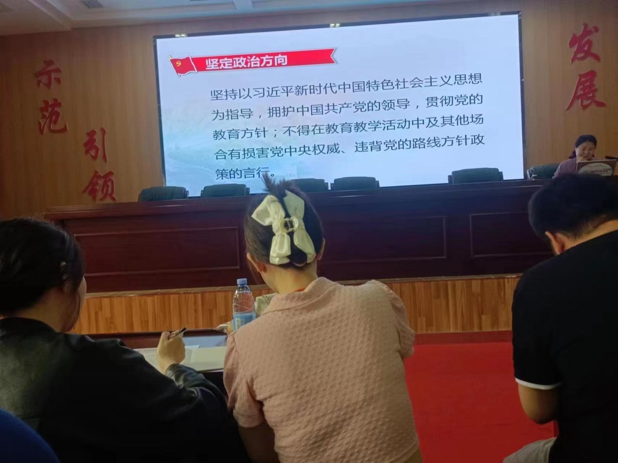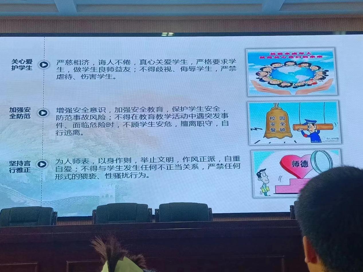 当天上午,我县参训的各学科教师在教师进修学校大教室认真聆听了肖四萍专家带来的《践行师德师风,做新时代“四有”好老师》的专题培训。她在报告中指出了什么是师德师风。为谁培养人?为党育人,为国育才,怎样培养人?新时代人才培养的行动指南,六个下工夫,九个要求,坚持党对教育事业的全面领导,把立德树人作为根本任务,靠谁培养人,靠教师。肖四萍专家通过课件形式向大家展示了党的领导人在二十大关于教育问题的论述中指出了为谁培养人,培养什么人,怎样培养人,靠谁培养人一系列问题及解决方法, 教师要带头建立社会主义核心价值观,弘扬真善美、权利、正能量,不得通过课堂、论坛、讲座、信息、网络及其他的渠道发表、转发错误观点。或编造、散布虚假信息、不良信息,落实立德树人,根本任务是遵循教育规律和学习成长规律,因材施教,不得违反教学规律,从而影响教学的本职工作。要关心爱护学生,加强安全规范,坚持严以养正,严慈相济,诲人不倦,真心关爱学生,严格要求学生,做学生的良师益友,不得歧视侮辱学生。她的专题报告赢得了在座老师的阵阵喝彩。