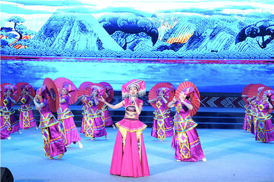 晚会由第一篇章《山水之音》、第二篇章《团结之歌》、第三篇章《世界之谣》、第四篇章《传扬四方》四个部分组成。 第一篇章以《山水之音》为题,以原生态山歌情景表演表达了在广西这片热土上,以12个世居民族为代表的各族人民生生不息,用勤劳、勇敢和智慧,浇灌出八桂大地的美丽富饶。《多耶》《歌的家乡》《美丽姑娘赶歌圩》…用歌声、鼓声、欢笑声,编织出壮乡歌海的多彩风情。
