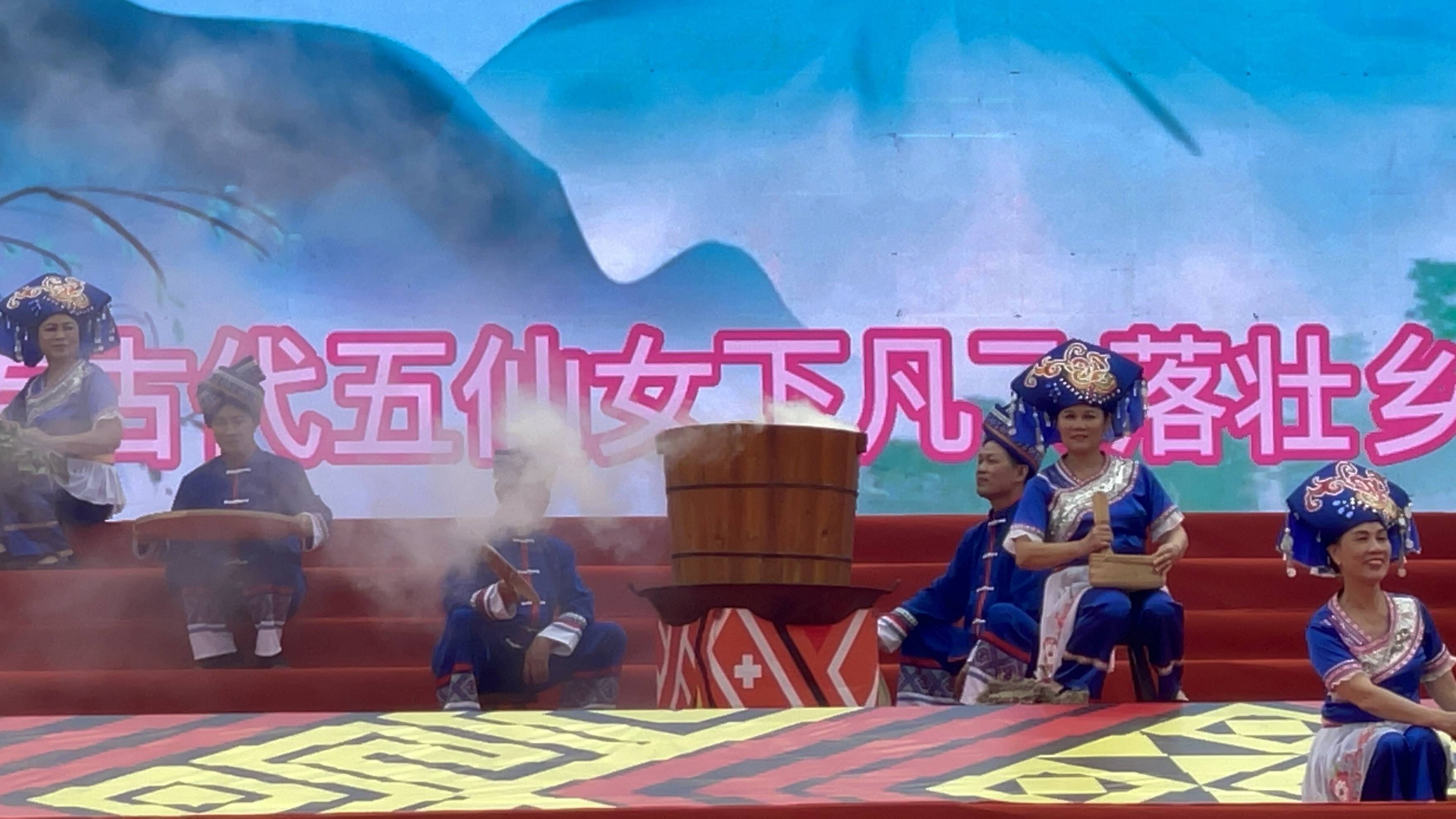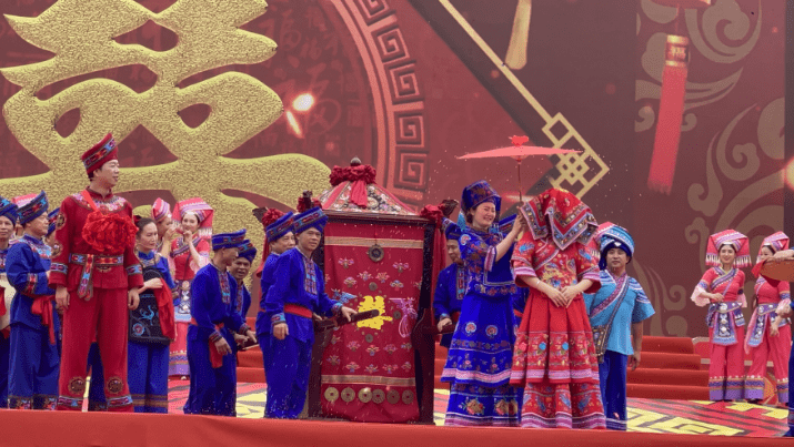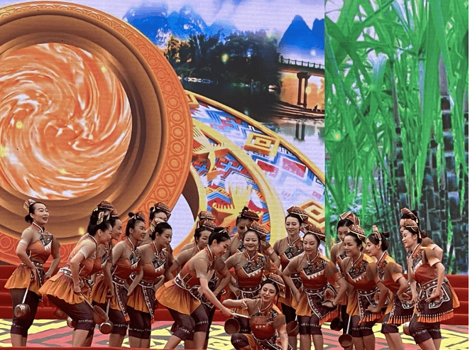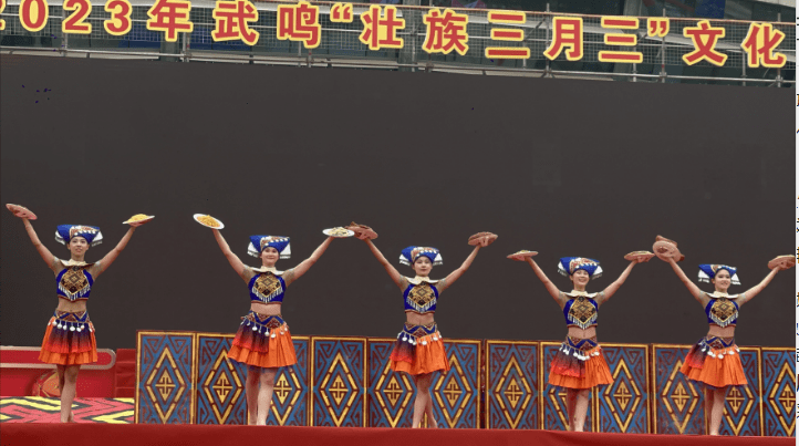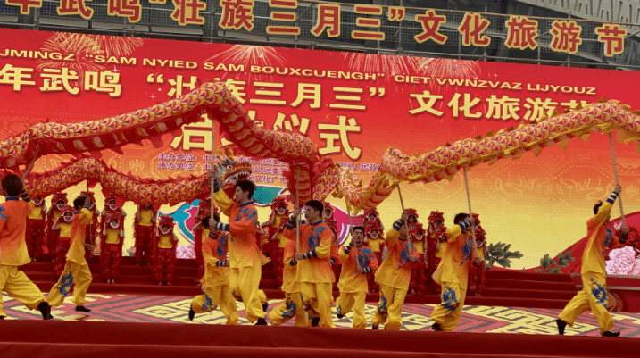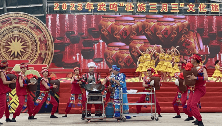 在启动仪式上,魅力武鸣·多彩非遗”非遗项目展示展演、“锦绣云裳·美丽壮乡”壮民族服饰展示、“情满壮乡·美食共享”非遗美食节活动,武鸣山歌、壮乡龙狮等礼仪歌舞·传统表演,壮族婚俗、壮族服饰等民俗记忆展示,跳竹竿、板鞋舞等传统体育竞技等各类非遗活态展示展演展销活动轮番上演;除此以外,活动还将武鸣壮族柠檬鸭、府城土制红糖、壮族五色糯米饭制作技艺展示,非遗美食、文创产品展销等系列丰富多彩的非遗文化活动展演搬上舞台,通过大型歌舞、小型音乐剧、互动体验、现场解说、魔术表演等形式,现场展示近年来武鸣非遗文化传承的丰硕成果。