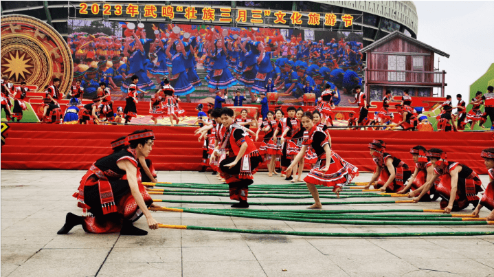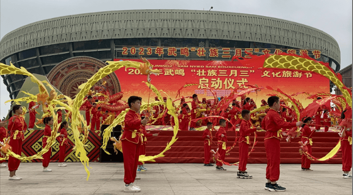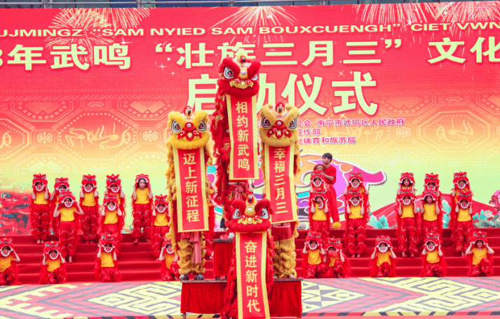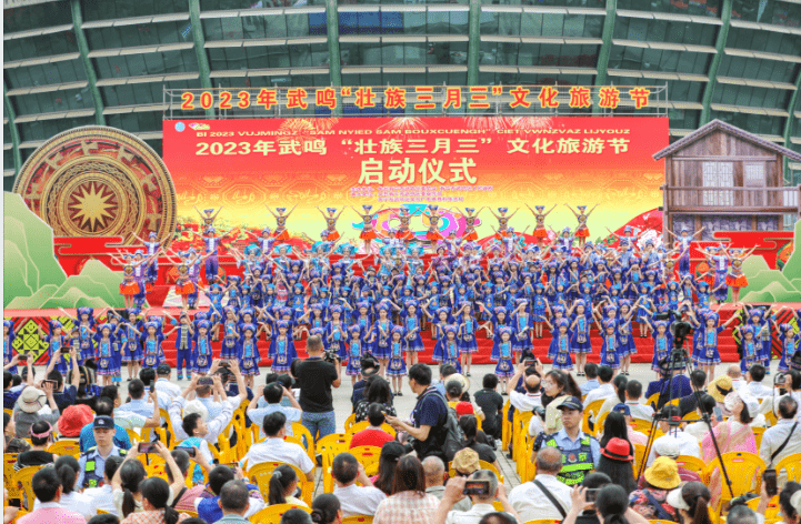 4月22日,2023年武鸣“壮族三月三”文化旅游节在广西南宁市武鸣体育馆广场举行启动仪式。据悉,本届文化旅游节活动涵盖文化、体育、景区、经贸及乡镇5大板块共23项活动,从不同维度展现武鸣“壮族三月三”深厚的文化底蕴,强化壮乡人民共有的传统文化记忆,铸牢中华民族共同体意识;此外,武鸣“壮族三月三”推出5大“玩法”尽炫民族风采,邀您共享壮乡文旅盛宴的无穷魅力。