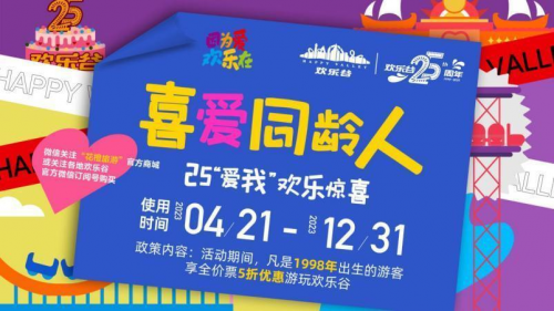 (新花橙平台) 从繁华都市开心地 开启欢乐新征程 25年前的故事始于一个“欢乐”的承诺。如今,欢乐谷品牌从“新”出发,开启新的征程,书写更多欢乐故事,描绘更多欢乐篇章。 为感谢谷迷们的支持,欢乐谷在直播期间推出了25周年超大福利包,九地欢乐谷接力,上演九城欢乐连连抢。“两毛五夜游欢乐谷、两块五尽享全天乐、二十五元一年玩过瘾”,直播间内的抢票可谓争分夺秒,谷迷们十分给力,走进直播间的人数不仅“蹭蹭蹭”地往上涨,还不断与主播弹幕互动,高潮不断,气氛热烈爆棚! 除此之外,据“爆笑两姐妹”的菠菜姐姐透露,年内欢乐谷品牌的25周年活动还将继续送出三大福利礼包。 一是喜爱同龄人-25“爱我”欢乐惊喜:从4月21日到年底,凡是1998年出生的游客享成人票5折优惠游玩欢乐谷;