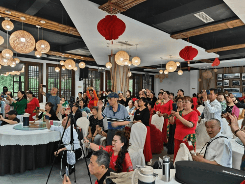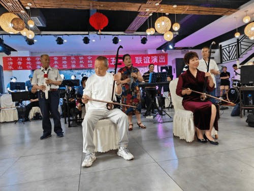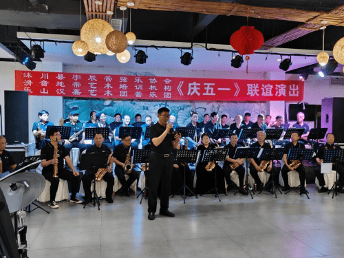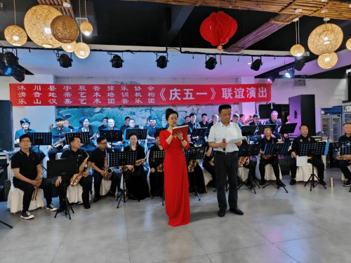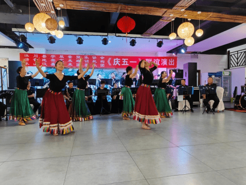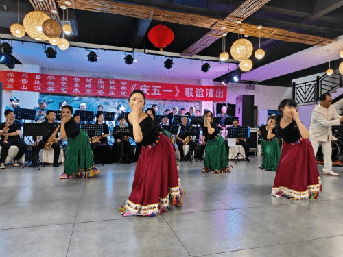4月21日,沐川县宇辰管弦乐协会邀请乐山汉嘉艺术团赴沐川举行文艺节目联谊演出活动,共同庆祝“五一”国际劳动节。 21日下午3时许,乐山汉嘉艺术团、沐川县宇辰管弦乐协会、滑音地带艺术培训机构庆“五一”文艺节目联谊演出活动在沐府山庄举行,从开场舞《幸福中国一起走》,到男女声二重唱《我爱你中国》、小合唱《今夜无眠》,藏族舞蹈《吉祥》,古典舞蹈《入画江南》,男声独唱《红旗颂》《战士为国守安祥》,女声独唱《我们的中国梦》《沂蒙颂》《我的祖国》,管乐合奏《铁血丹心》器乐合奏《天路》《平凡之路》《红歌联奏》共20个精彩纷呈的节目。最后,全体演员与观众翩翩起舞,汉嘉管乐团合奏《我们的生活充满阳光》《欢聚一堂》。(李正银)