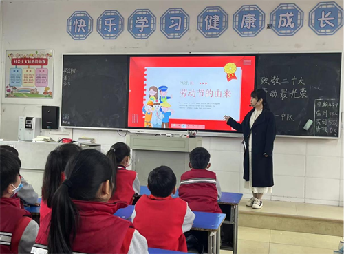 升旗仪式结束后,各班召开了主题班会,班主任带领学生进一步了解“五一”国际劳动节的由来,学习身边劳动模范的故事。同学们纷纷上台发言,要向劳动模范学习,继承并发扬中华民族的劳动美德,从小学习劳动本领,努力成为一名合格的建设者和接班人。