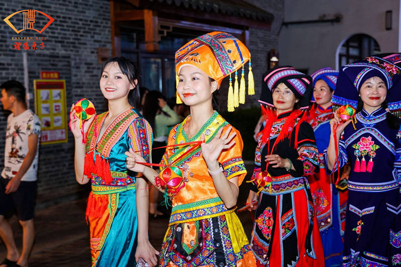 在启动仪式上,陈志鹏先生、李铭如女士、潘玲女士为本次文化活动周致辞,三位领导分别从节日的的祝福,对传统文化的发扬和传承,对未来美好生活的展望,加强与东盟伙伴的国际交流给予了美好的祝福。也给第19届中国-东盟礼仪大赛及文化活动周给予了美好的祝福,18届中国总决赛冠军选手贺琳同学与姚旺同学他们都是在去年“礼仪崇左”中国赛上获得的冠军,故地重游,感慨万千,他们也都献上了自己对大赛诚挚的祝愿。仪式上还惊喜邀请了一位当地壮族歌仙黄妈,以清越动人的山歌唱响了我们第19届中国-东盟礼仪大赛的民族旋律!期间大赛选手共同参与了太平古城华服汇巡演活动,向游客展示了中华民族传统服饰的多姿多彩。