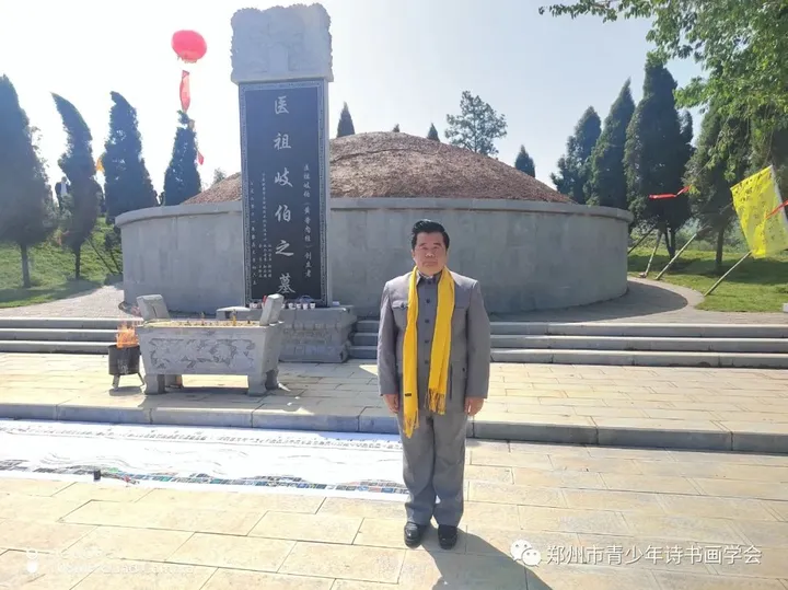 谨此 敬告医祖,伏惟尚飨! —————————— 王林栓: 红色诗人 郑州市青少年诗书画学会会长 ![]() ![]() 红色诗人、郑州市青少年诗书画学会会长王林栓肃立于华夏医祖岐伯灵前 |