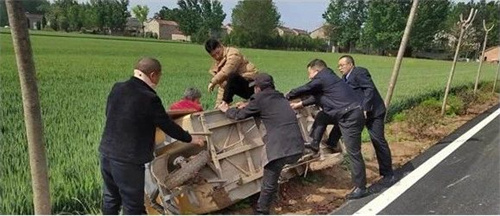 群众安危无小事,细微之处见真情。4月25日上午,鹿邑县应急管理局执法队员下乡执法途中,在太清宫镇怀六路段,发现一辆电动三轮车侧翻在麦田内,车辆驾驶人员及其老伴因年龄较大、行动不便,被困车内。执法队员第一时间展开救援,与现场赶来的群众一道,奋力将出事车辆从麦田中推出,停放到路边安全位置,并询问了被困人员的身体状况。原来,老人在驾驶电动三轮车时,因车速过快,操作不当,导致车辆失控侧翻。目前,两位老人身体并无大碍。![]() 随后,执法队员询问了老人的家庭住址与子女电话,并通知了其子女前来接老人回家。