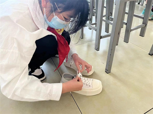 本次比赛紧紧围绕孩子的日常生活技能展开,根据不同年级学生特点,精心设计了整理书包、系红领巾、叠衣服、系鞋带等比赛项目。