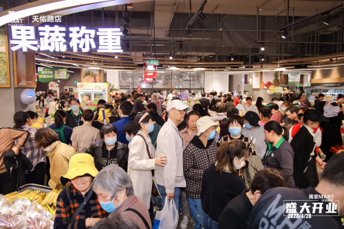 萬家MART天佑路店深耕核心商圈,深度渗透3KM社区、园区企业及写字楼,在宣传方面充分整合购物中心资源,通过自主及联合招募,在开业前即实现了商圈人数50%的会员招募渗透率,招募人数超过3.2万人。 在商品力打造方面,根据商圈特点,结合消费者洞察及行业趋势分析,贴合周边商圈定位,围绕“一日三餐”和“居家生活”两大消费核心场景,重点精选了符合目标客群的新鲜食材、家庭食品、美食、休闲食品、餐厨用品、个人护理、健康护理以及家庭清洁八大商品模块,精选品质商品打造核心记忆点。