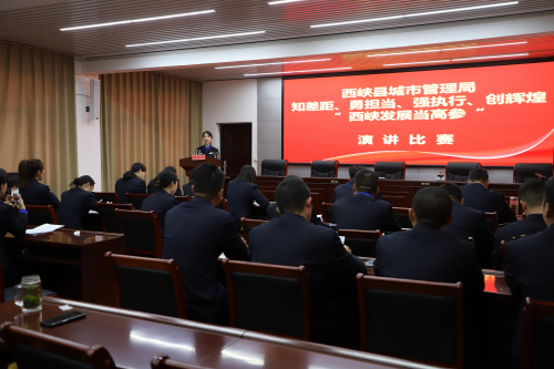 为全切实推动“观念能力作风提升年”活动落实落细,充分展示新时代城管执法人员的良好精神风貌,大力弘扬“四敢”精神,践行“四个极限”,推进大转观念、大提效能、大促发展,奋力谱写大美西峡新篇章。日前,西峡县城市管理局举办“知差距、勇担当、强执行、创辉煌”主题演讲比赛。