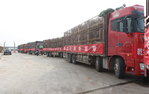 近日,江苏乾宝牧业公司、新疆巴州畜牧局以及天苗集团兴牧源公司共同举办了万只湖羊进疆启运仪式。在乾宝牧业公司内,到处都是一派欢声笑语、热火朝天的景象,调运新疆的万只种羊正在装车,几十辆装满湖羊种羊的大卡车,挂红花、披横幅,整装待发。 新疆巴音郭楞蒙古自治州畜牧局党组书记张勇,新疆天苗集团党委副书记、兴牧源公司党委书记张卫,尉犁县畜牧兽医局局长于清华,兴牧源公司副总经理蔡新,巴州畜牧工作站科长王旭等出席,并就巴州湖羊种业工程发展、巴州乾宝湖羊产业研究院和兴牧源湖羊产业科技示范园建设进行了深入探讨。江苏乾宝牧业公司董事长王跃程,总裁蒋柏林,副总裁王裕华、蔡实实,总经理王桂江等参加了仪式。