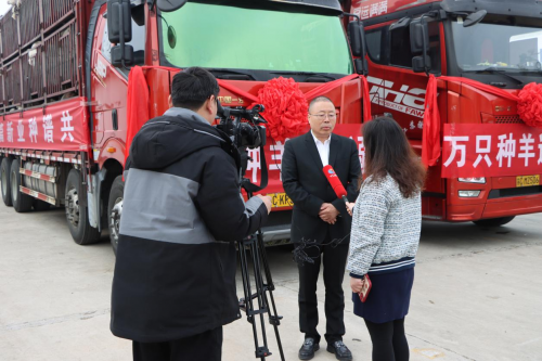 ◎王跃程接受媒体采访 王跃程表示,江苏乾宝牧业公司是农业产业化国家重点龙头企业、国家肉羊核心育种场、国家种业阵型企业,应当具有高度的社会责任感和担当精神。此次万只种羊进疆,并不仅仅将之作为一个单纯的经营行为,更多的是把它看作为推进新疆肉羊种业振兴,实现畜牧业高质量发展的一项重要的任务。乾宝牧业不仅要全力帮助新疆兴牧源公司将万只种羊引好、养好,在种羊繁育方面达到高产、高质、高效,而且要以此为示范标杆,带动更多的新疆农牧业企业发展好湖羊产业,促进国家的乡村振兴战略在新疆生根开花结果,助力实现“富民兴疆”。