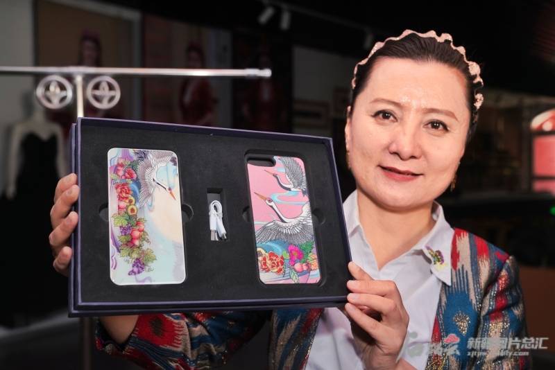 5月10日,哈密市传统工艺工作站传统工艺传习所里,一名学员展示制作精美的刺绣手机壳。